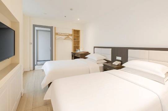 刚开始这个价格没有期望有多好,毕竟就只住一晚,而且是出去逛的,不呆在房间里,到了之后给我们升级了房间,服务员特别贴心,缺一根充电线,亲自送到房间,行李箱拉链坏了,贴心的给我们大的透明胶带带走,以防不时之需!最关键的是真的很方便,门口就是汽车站,连我那个不愿走路的胖儿子,也说实在太好了,因为乘车方便,不用多走路,入住退房办的都很快,房间空间宽敞,床品柔软舒适,卫生打扫得很干净,连角落都没遗漏。周边有生鲜超市,买菜做饭也方便。地处市中心热闹地段,出行购物超便利,隔音效果也不错,整体体验感远超价格,已经收藏了!