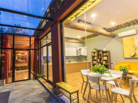 “合新家”是坐落在蒲洼自然保护区内108国道旁一处拥有上百年历史的石木结构的农家院落。 院内房屋的主梁材质是选用一棵有几百年历史的麻核桃树(野生文玩核桃树)的主干。现如今,这根主梁的价值可想而知。 墙体为就地取材的山石垒筑,与屋顶那历经百年风雨的青石板交相辉映,彰显着它的质朴与刚毅! 在保留原汁原味的基础上,院落经过精心修葺,房屋也进行了开拓性装饰。落地窗、透明屋顶、床头的书籍、柔和的灯光、敞开式浴房、原木的房梁与青石板的院落、果树上的秋千,还有那隐蔽处的私人酒窖…浑然天成,融为一体…… 在这海拔1200米的院落里,清晨的床上就可以透过落地窗沐浴东山顶那一缕朝阳… 在这金秋时节的院落里,白天可以在院里果树的秋千上自在荡漾,触手可及那泛着红笑脸的沙棠…… 在这远离繁华的院落里,傍晚可以于酒窖品味各个年份红酒的芳香…… 在这小北欧气候的院落里,夜晚可以躺床上透过玻璃顶抬头看银河星光、嫦娥月亮…… 在这自然保护区的院落里,夜有蟋蟀蝈蝈,晨有百鸟合唱…… 在“合新家”的院落里,有大山间特有的质朴