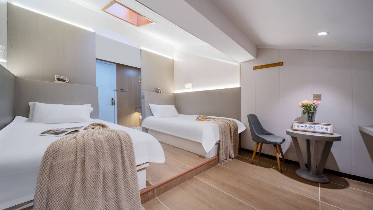 房间很宽敞,卫生也不错!地理位置很好,去周边玩玩看看都很方便,吃住玩一体化!推荐大家来宁波选择这里下榻!