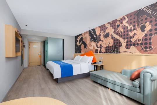 以独特的设计风格、贴心的服务和优越的地理位置,成为差旅人士在吉安的理想下榻之所。酒店坐落于吉安市青原区学苑路18号,与井冈山大学相邻,散发着浓厚的学术气息。距吉安火车站仅数步之遥,旅客无需担忧舟车劳顿,轻松实现 “下车即达酒店” 的便捷体验。房间内各类设施完备,从独立卫浴间配备的品牌洗浴用品、柔软浴巾,到高速无线网络、便捷充电接口,再到精心准备的免费瓶装饮用水,每一个细节都彰显酒店对宾客的关怀与用心。部分房间还设有观景窗,可俯瞰城市美景或宁静街景,为入住增添一份惬意。周边交通网络发达,多条公交线路途经此处,无论是前往市区繁华商圈,还是奔赴井冈山机场开启更远旅程,都能高效出行,为行程节省宝贵时间。秉持 “年轻、活力、时尚” 的品牌理念,酒店外观设计独具现代感,鲜明色彩与流畅线条碰撞,在周边建筑中脱颖而出,彰显独特魅力。步入大堂,开放式空间布局令人眼前一亮,简约而富有创意的装饰元素随处可见。彩色几何图案地毯、造型别致的灯具、艺术感十足的壁画,共同营造出充满活力的社交氛围,让宾客瞬间忘却旅途疲惫,沉浸在轻松愉悦的环境之中。