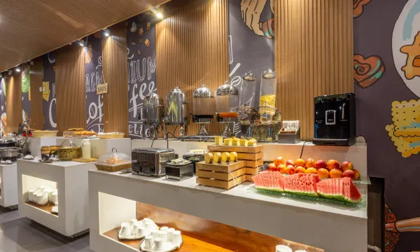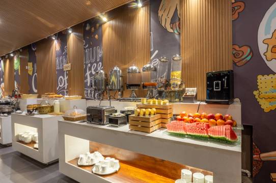 酒店早餐厅为您提供营养丰富、种类丰盛的自助早餐,精心准备四十多种中西式菜肴以满足不同口味的宾客,有现磨咖啡,自烤点心,而且早餐所有的馅料均为自制,无任何添加,让您吃的健康、放心、满意!