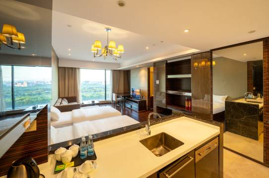 公寓拥有各类舒适客房,均经过专业设计师团队精心设计、布置,装修典雅、个性化。房内配备嵌入式高档家电、中央空调、中央暖气、独立卫生间浴室、一体化西式厨房、全自动烘干型洗衣机、数字电视等,为您提供私密、高品质的居住空间。