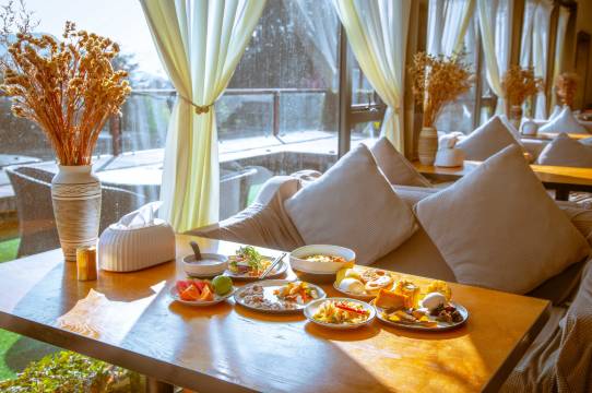 离格姆女神山很近,我们到的很晚,接近凌晨三点,前台小哥一直等着,帮我们拿行李送房间,还免费升了房型,房间很干净,一应物品俱全,除了浴室门有点漏水,其他都很好,房间很大很舒适,整个民宿环境很好很漂亮。