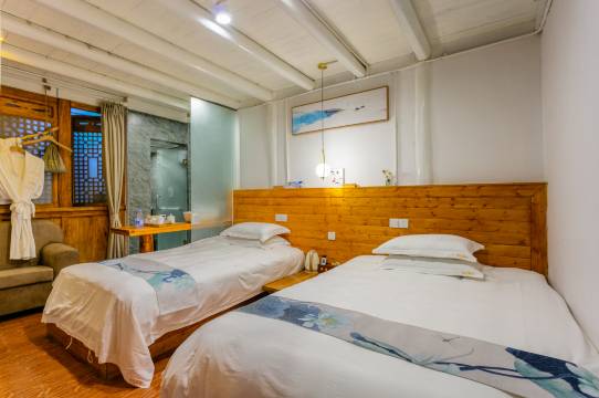 客栈粉墙黛瓦,庭院以花木翠竹为篱,点缀着四季花卉;室内采用中式风格与现代元素的巧妙兼柔,家具窗棂与布艺床品的相互辉映,移步变景的精妙小品将简单典雅的装饰体现在每一个角落。卫浴、寝具和电器均按高星级酒店配置。