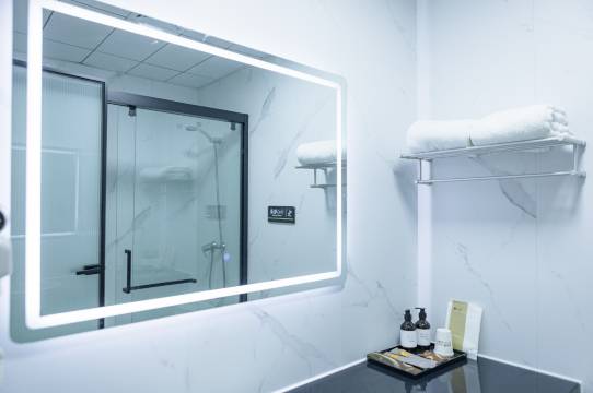 酒店客房实现卫淋间干湿分离,内设双层隔音玻璃、隔音遮光窗帘、液晶电视、USB电源等现代设施。
