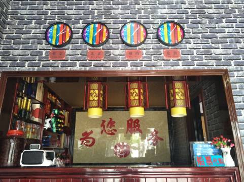 客栈附设中餐厅,以徽州农家特色风味为主,菜品有放养土鸡、深渡铁板毛豆腐、徽州臭桂鱼、千岛湖有机鱼头、野笋烧土猪肉及各类山珍鱼味,可容纳200余位旅人同时用餐。