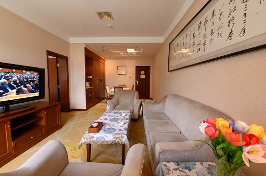 房间很好,窗外绿树成荫,环境优美,服务也很好,不愧是政务接待宾馆,前台、营销、保安都很温暖的帮助客人,有问必答,订客房还提前打电话沟通抵达方式,自驾的可以还提前办理通行证,服务周到而有耐心!