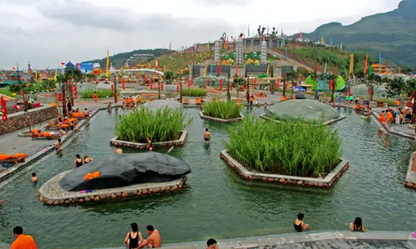 新西部大峡谷温泉景区占地1651亩,整个景区由“一个中心、九大功能版块”组合而成,即一个国际风情洗浴中心,汇集洗浴、休闲、娱乐、运动、观演、餐饮、商业、度假、会务等九大功能版块组成的国际度假娱乐中心。
