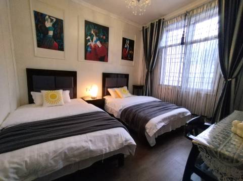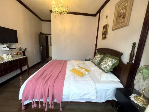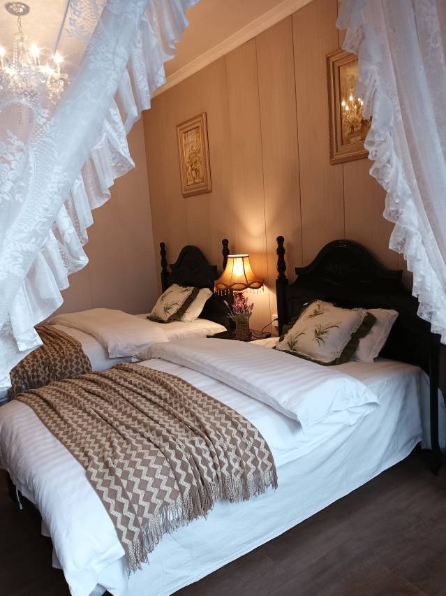 客栈在古镇里面,吃饭很方便。房间装修有种欧美宫廷风,顶层还有个空中小花园,晚上躺摇椅上看星星,别提有多惬意了。老板服务很热情,还给免费升级了房间。