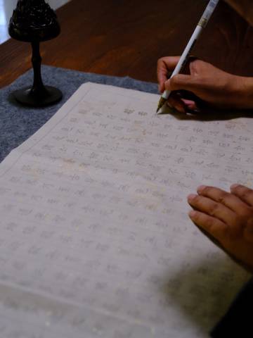 最惊喜的是院子里藏着这么好的茶空间!管家小姐姐带我们参观了器物藏品,还体验了点茶,学着搅出绵密泡沫。旁边有爨宝体书法字帖,抄了几笔,虽然写得歪歪扭扭,但心真的静下来了。这种有文化沉淀的民宿,沙溪找不到第二家。