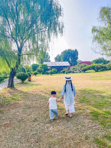 很有感觉的小院子,满满的欧洲田园风,房间干净整洁,该有的酒店设施一个不少,在这里户外的感觉真是太棒了,没有城市的喧闹,呼吸着新鲜空气,看山看水,有种自己私人庭院的感觉,特别适合家庭出游,又适合众多好友一起结伴同行,满满的度假感觉,舒服又惬意!从入住到退房,每一个环节的服务都很舒服,我们晚退房了接近两个小时,前台小姐姐没有催,也不用加费用,还很耐心的给我们讲返程路线和附近美食,必须五星好评!来年我要夏天来住,摘桃🍑摘梨🍐,想想都很美好!