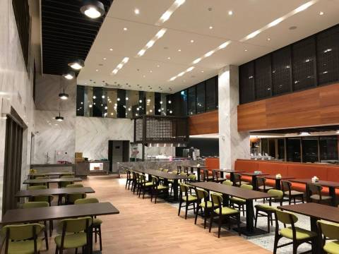 饭店大厅是挑高设计,入口一旁则是地下停车场的车道,大厅柜台前方则是每日提供早餐的餐厅。