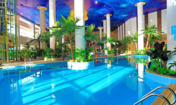 酒店设有锦鲤池、瀑布池、戏水池、叠泉、贵妃池、药物汤池、鱼疗池、SPA水疗池等30多口泉眼。
