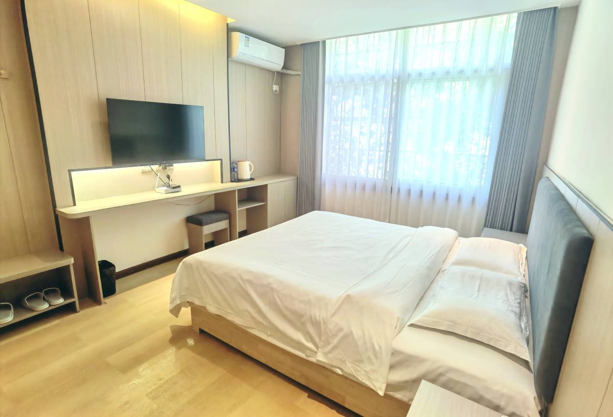 宾馆客房干净整洁优雅,房内布置温馨舒适,整洁大方,设有空调、电视、Wi-Fi等,并提供24小时热水淋浴。