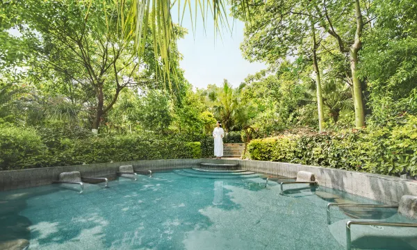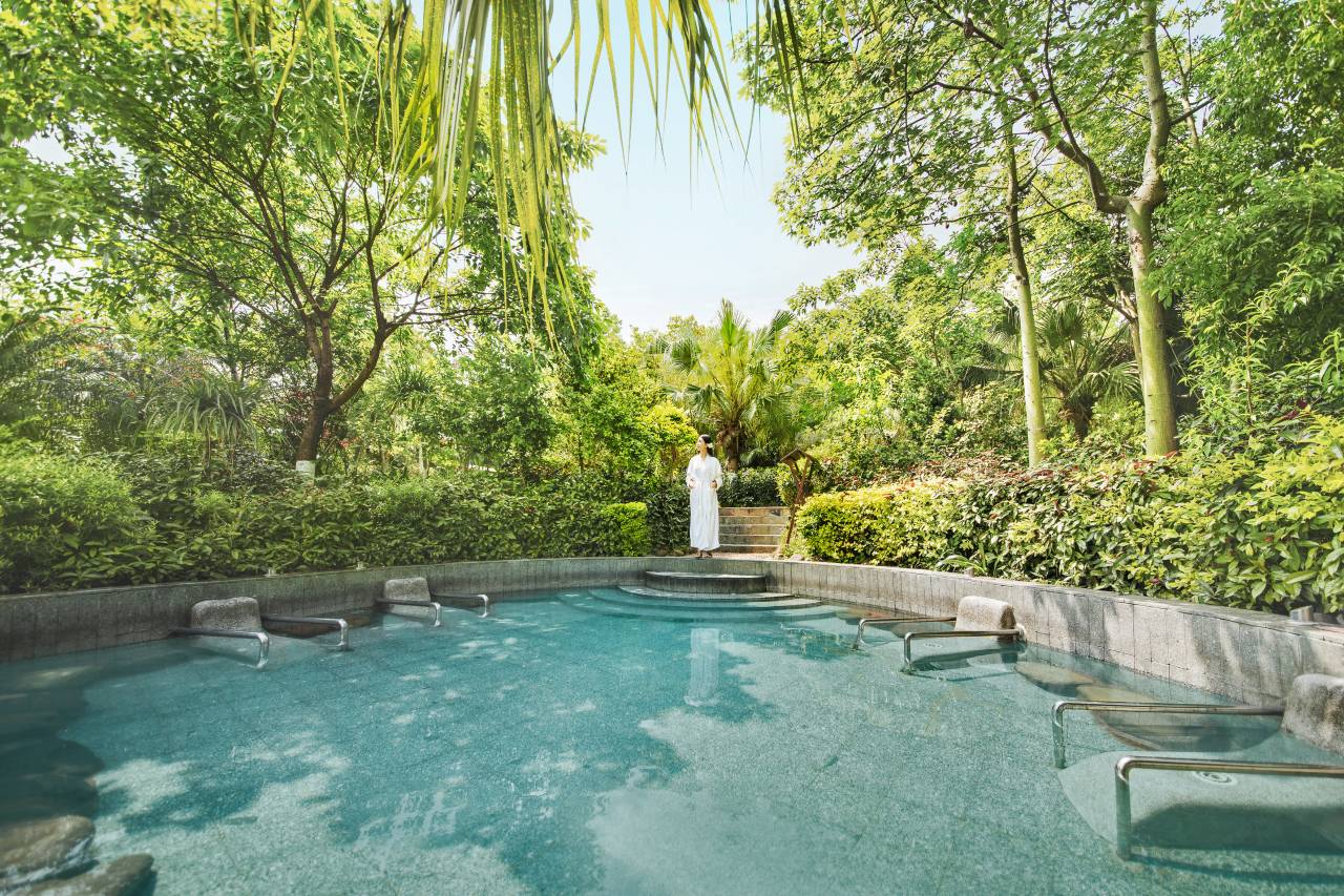 温泉洗浴区内有各种温泉泡池,可同时容纳1500多人泡浴,能有效、美容、舒缓疲劳,融自然与养生完美结合。