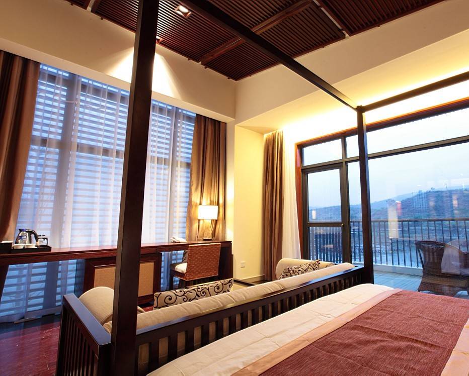 度假村依山就势而建,呈中国传统的庭院式民居风格,亭台楼阁,相互映衬。各式精致舒适的客房,冷、暖空调、高速宽带上网、可接收多个频道的卫星电视等一应俱全。房内均是温泉用水,设有私人温泉泡池。