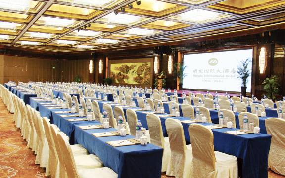 【会议无忧】酒店拥有780m2无柱宴会厅,附有340m2多功能厅,另有8个可容纳15-40人的小会议室,并配备高速宽带上网、高清晰多媒体投影仪及先进的音响设备,以满足各种类型的宴会及会务需求。