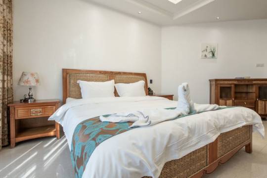 小区环境很不错,鸟语花香的,空气清新,离海边也近,也能看到海。房间够大够干净,服务热情周到,总体很满意