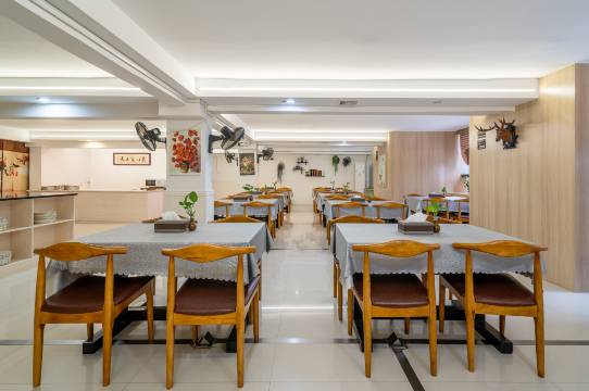 早餐免费,馒头、稀饭、炒粉这类简餐,能吃饱;就算自费也只要15元/位,性价比很高。