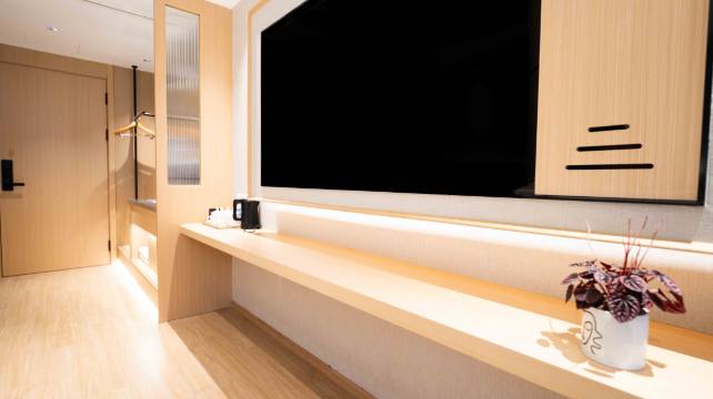 酒店拥有设计时尚,优雅舒适的客房,配备全屋智能、光纤、洗衣房、休闲吧等高品质客房设施设备,精品家具、品牌电器、卫浴、电视、24小时热水等为商旅宾客提供温馨惬意的居家感受。