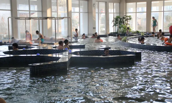 室内温泉馆内有室内泳池、浴场、水上娱乐等。56个室外温泉泡池,包含四季祥瑞区、名汤养生区、汤池木屋区、冲浪区、溶洞温泉区、特色风情区、美白养颜区、理疗与唐风唐韵区等各具特色。