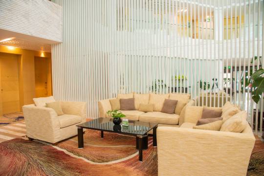 酒店在园林绿化之中,大堂宽敞明亮,客房很大干净整洁卫生,房间里还有水果,前台接待也非常热情,早餐质量很好,品种多样,值得推荐点赞!