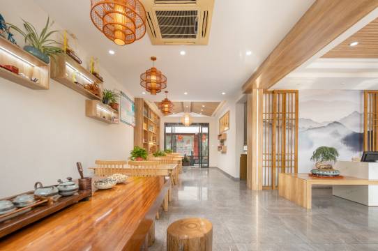民宿依山而建,曲折回旋,环境清静幽雅,尽显佛教文化。酒店的客房设计极具人性化,内部配套设施完善,为宾客提供舒适、温馨的休息地。