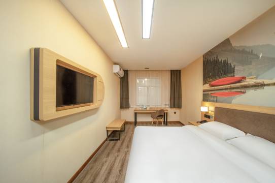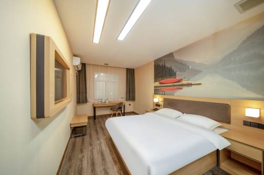 酒店门口就能停车,房间干净厕所干净,热水出水很快,一次性用品和吹风机也很好用,刚开业浴巾床品都是新的,使用很放心