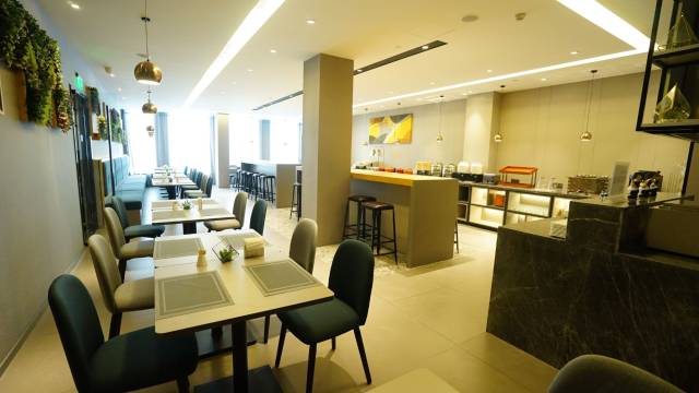 半夜才入住的,房间干净整洁,在酒店订外卖也很方便,有机器人送上来,另外周边也很安静,这点很好,一晚上睡的很好。