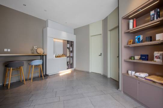 麻雀虽小五脏俱全,卫生做的蛮好的,12.31 跨年夜住的,房价接近 400,平时好像就是不到两百,这个价格满合适的,附近有好几个商场,有的是步行就可以到达,有的就是打车起步价。点餐的话是机器人会送上来