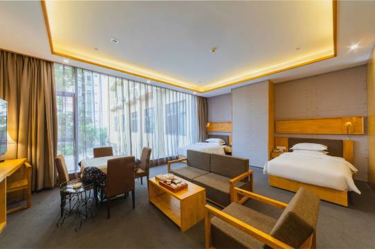 房间卫生,环境优美,房间设施齐全,服务周全,饭菜种类丰富多样,既有适合南方人口味的饭菜,又有适合北方人口味饭菜,我们非常满意。