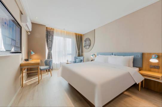 房间大小刚好一个人住,大床一边靠墙,拉开窗帘阳光就能撒满床铺的感觉太棒了!步行到江边和商业区也很快,退房的时候才发现楼下百果园隔壁就有一家安静的咖啡店👍步行可到的西餐厅也非常棒。