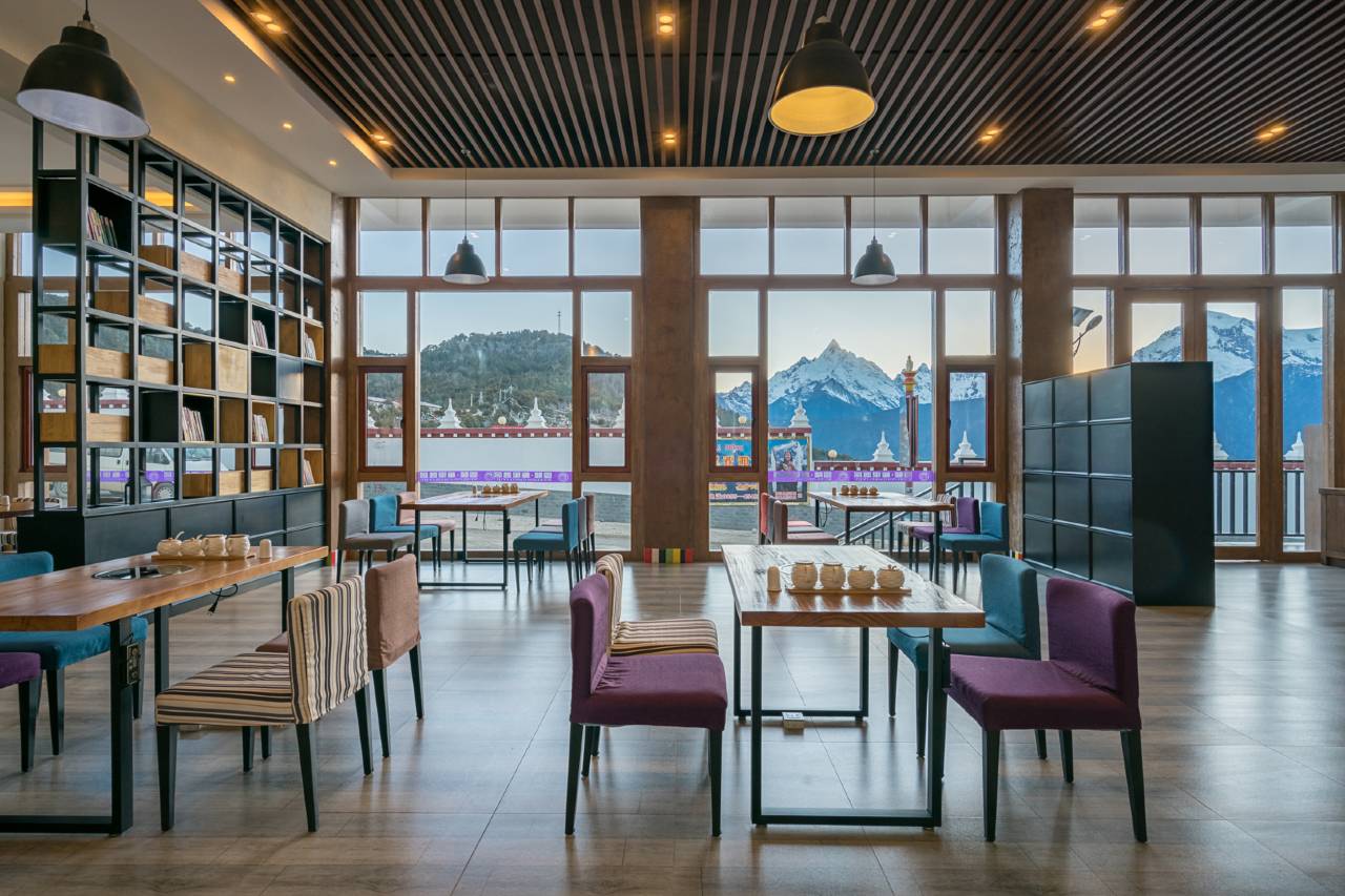 酒店位置很好,就在观景台边上,坐车和出门都很方便。带阳台的房间可以看到雪山,但是不如楼顶观景平台的视野开阔。房间的设施都很完备,饮水机是自动出热水那种泡茶蛮方便的。因为临街所以还贴心送了隔音耳塞,不过最后睡得很好还来不及塞就睡过去了。还有制氧机和加湿器,基本上都没怎么用上。卫浴空间很大,做了干湿分离。建议中午到达,中午离开,这样可以不用那么匆忙。酒店早餐在一楼,可选择种类不多,但肯定可以吃饱的。