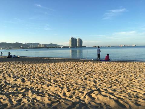 房间性价比高,干净,过马路就是海边,晚上看凤凰岛灯光秀特别方便,早上去海边看日出,上午在海里游泳的人也多,沙滩上晒太阳的人也多。路边有好几家饭馆,吃饭方便,到解放路步行街也不远。