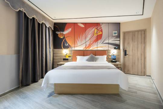 房间干净卫生舒适的洗手间还挺大的小的床品也很舒服的附近还有小吃跟餐饮的游玩的还有公园商场和广场的挺不错的啊很满意