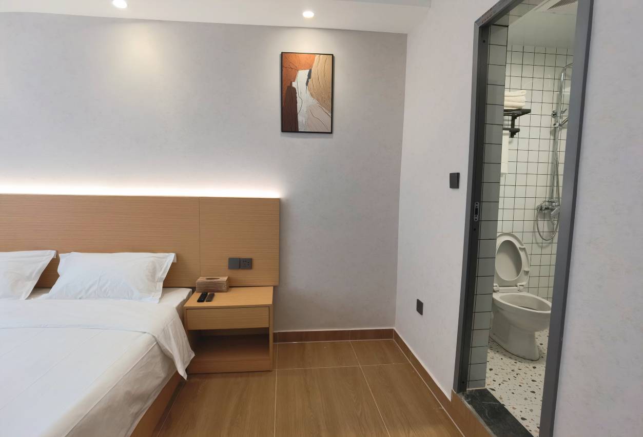 旅馆客房干净整洁、色调柔和,房内配置空调、24小时热水、独立卫浴等设施,服务热情便捷,使宾客体验舒适与愉悦,尽享一夜酣眠。