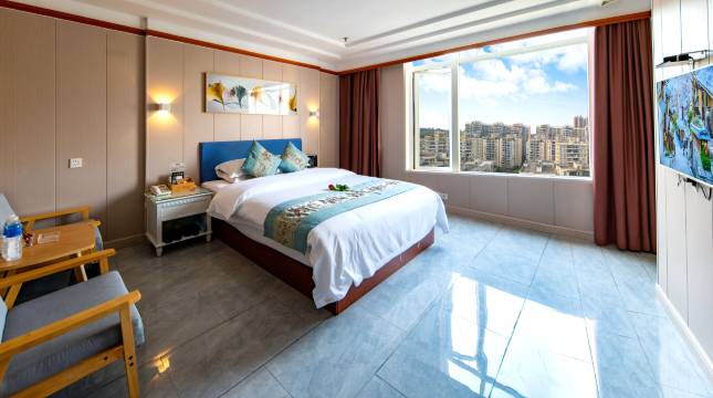 房间空间大,光线好,酒店南北对流,晚上也不吵,酒店的水也很赞,酒店配置齐全,酒店2楼美食美味,酒店卫生:干净,服务:尤其前台笑容美,设施:就是有点旧了,建议老板换新,酒店整体是不错的。酒店附近购物方便,散步也方便,也能偶遇美女跑步。值得推荐的商务酒店。