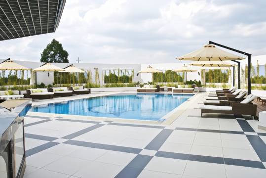 酒店位置离机场非常近 开车十几分钟 打grab不到十万的价格 老五星酒店 设施有点老旧了 但是早餐还可以 有河粉 性价比很高