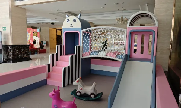 房间很大布局合理,很适合亲子家庭出游。一楼有儿童游乐设施。吃饭酒店二楼有中餐厅很方便。好多送了两份早餐卷。