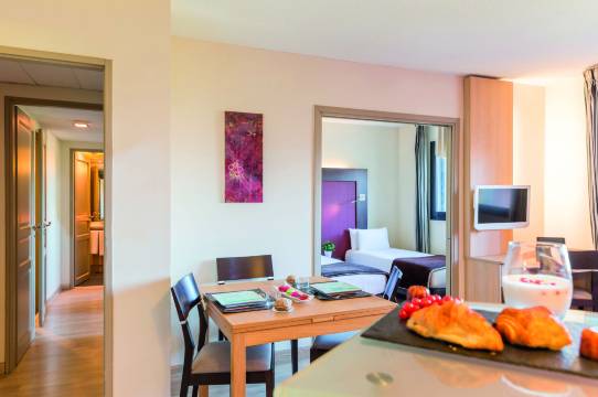 航班延误后,在这里度过了一个完美的住宿。从机场步行即可轻松抵达。酒店管理有方,员工服务周到。一室公寓房非常宽敞,如果与朋友合住,还可以选择关闭客厅区域,那里有沙发床。床很舒服,浴室有浴缸和独立的步入式淋浴间,这是一个额外的惊喜。卫生标准也很高。下次来图卢兹机场还会选择这家酒店。