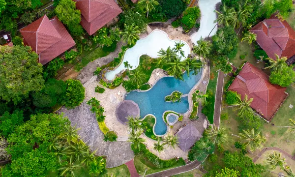 非常干净整洁。享受远离城市喧嚣的生活。令人惊喜的是,周围都是树木,却没有蚊子。游泳池也很干净。如果在接待大厅能有自动售货机卖软饮会更方便。没有通往码头的步道。