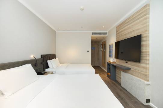 酒店整体装饰现代简约,客房布置舒适洁净、色调柔和;设有多款房型,房内配置空调、液晶电视、24小时热水、独立卫浴等设施,完善齐全。