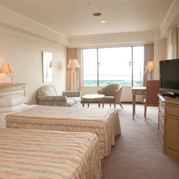 饭店房间很大温泉很舒服,可以看到猪苗代湖,景色很优美,是一个很舒服的饭店,冬天还可以来滑雪出门就是雪场非方便