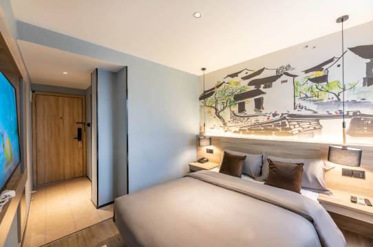 酒店以灰色原木系北欧风格调,以经济舒适面向广大消费者,为消费者提供“简单时尚,低碳环保,致力追求简单,自由,快乐的人们提供温馨的生活环境。客房布置宽敞舒适,通风采光;并设有多种房型可供您选择,客房24小时热水、智能网络电视、3D影视房,大厅有休闲吧,柜架上有古代史,职场心理学,幽默沟通学,思维导图等书籍,让您拥有一个干净、温馨、愉悦的住宿环境,享受一段自在舒适的旅程。