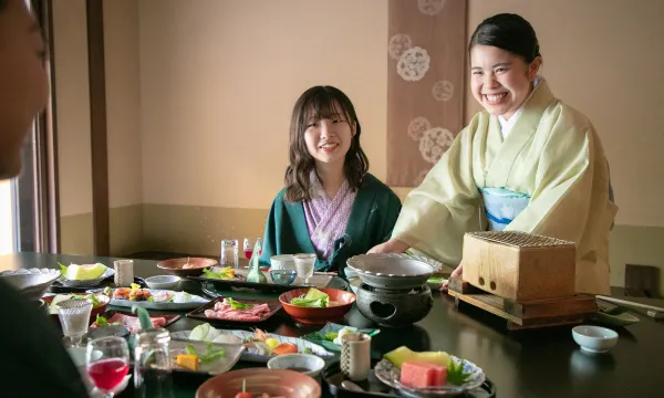 食物非常健康,而且你还能体验到传统的日式服务(他们为我们准备了色彩鲜艳的浴衣,我们在餐厅享用早餐和晚餐时都穿着浴衣)。私人温泉很棒,你也可以使用酒店内的公共浴池。我无法一一列举所有细节,但我们在这里的体验真的非常棒!