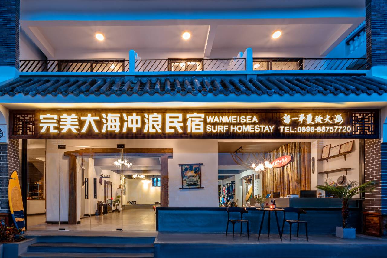 三亚完美大海冲浪民宿--是中国风筝冲浪主题客栈。店内有俩个陆地滑板碗池。地处海棠湾和蜈支洲岛码头旁,后海村内,近山面海,景色优美。是现在三亚保持最原生态的一个渔村,也是中国保存不多的渔村。08年我们一路追风追浪来到这个渔村,发现了这片未被开发的海滩。每年风季从南海海域涌进来的风浪,吸引了国内外很多风筝冲浪和冲浪爱好者前来。这片美丽的海湾总是可以让很多人舍不得离开。