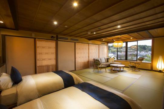 享受温泉等度假设施,或者到花园欣赏美景。此日式旅馆的其他设施包括免费 WiFi、酒店内购物和大堂壁炉。