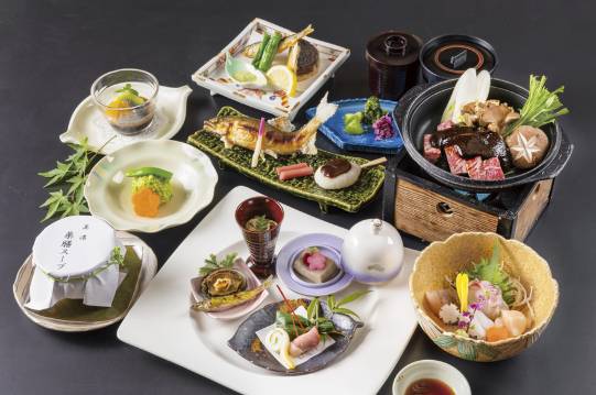 您可以到餐厅享用一顿美餐,也可以待在房间里,享受日式旅馆的部分时段客房送餐服务。