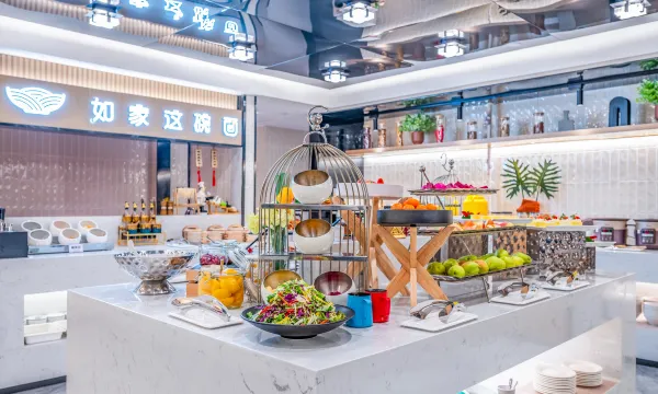前台小姐姐服务热情,办理手续速度很快,房间隔音效果不错,晚上休息的很好,早餐品种多,这个糕点架太惊艳了