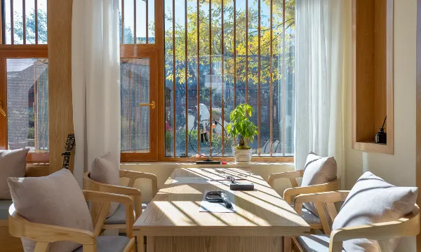 客栈聘请知名设计团队,在保留原有纳西建筑框架的基础之上融合新中式风格,古朴简约中却不失时尚感。方正建筑下的院落依托高低错落地势打造流水墙及现代枯山水景观,以艺术阐述禅意。